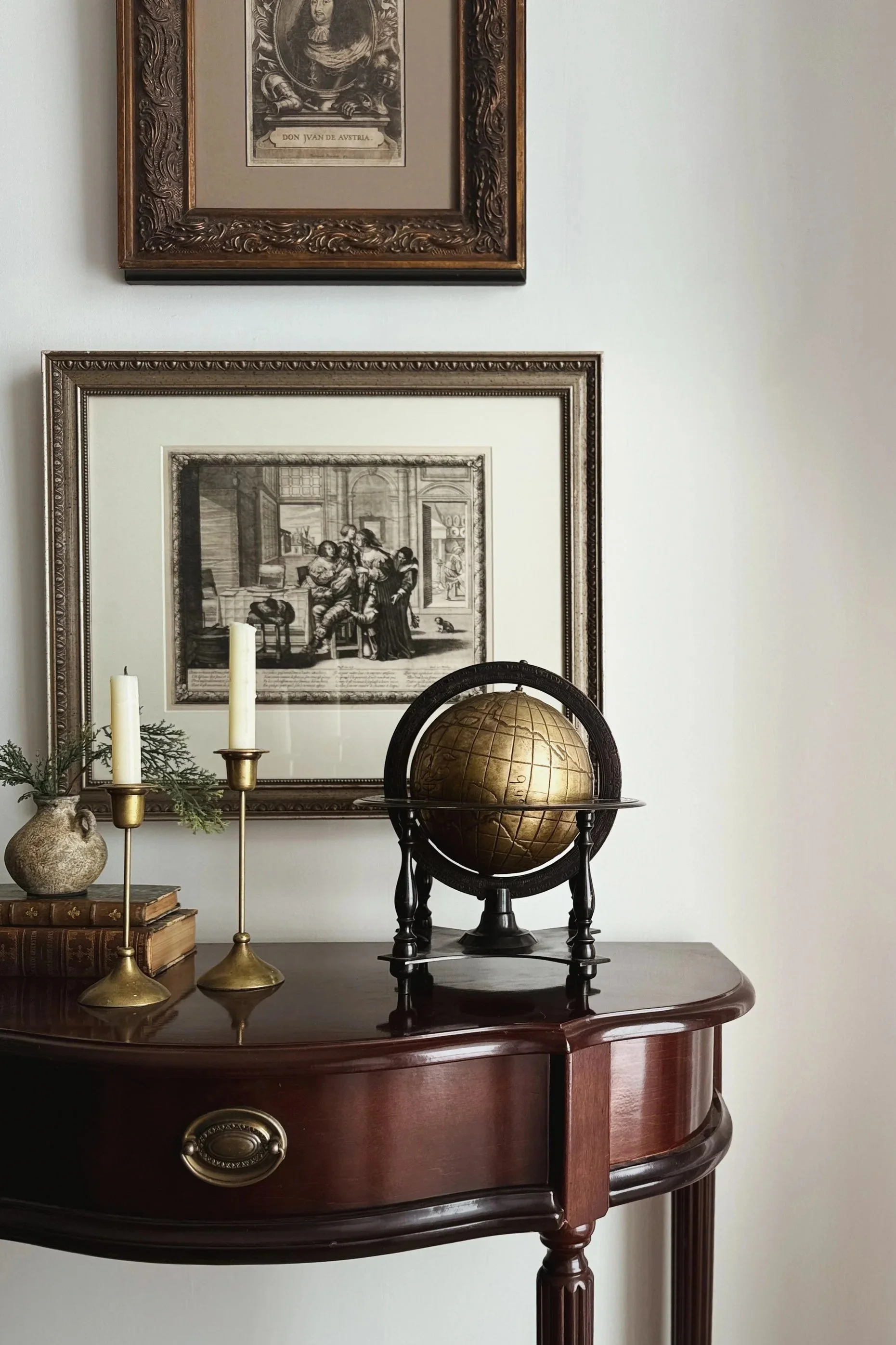 Old-world inspired and effortlessly timeless, it feels like absolute perfection. With its warm brass globe, decorative legs, and substantial weight, it carries the presence of a true heirloom—one that feels rich with history and stories waiting to be told.