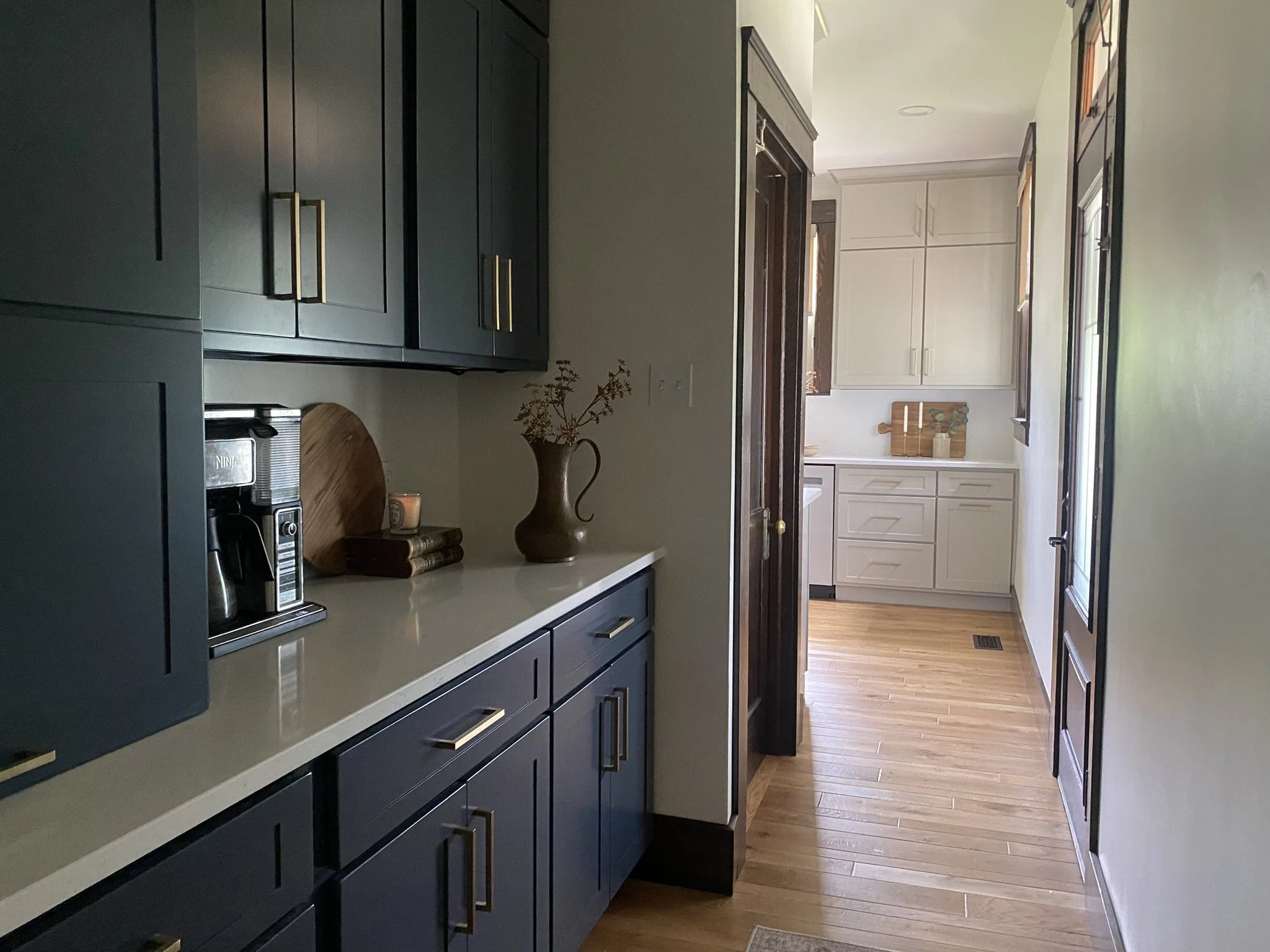 A former pantry closet was reimagined as a full butler’s pantry, complete with custom cabinetry that ties effortlessly into the main kitchen design. The goal was to maximize counter space within the same footprint, ensuring every inch works hard. The homeowner selected premium appliances to suit her work as an established food blogger, blending high performance with timeless style. The result is a warm, functional, and elegant kitchen designed for both everyday living and culinary creativity.