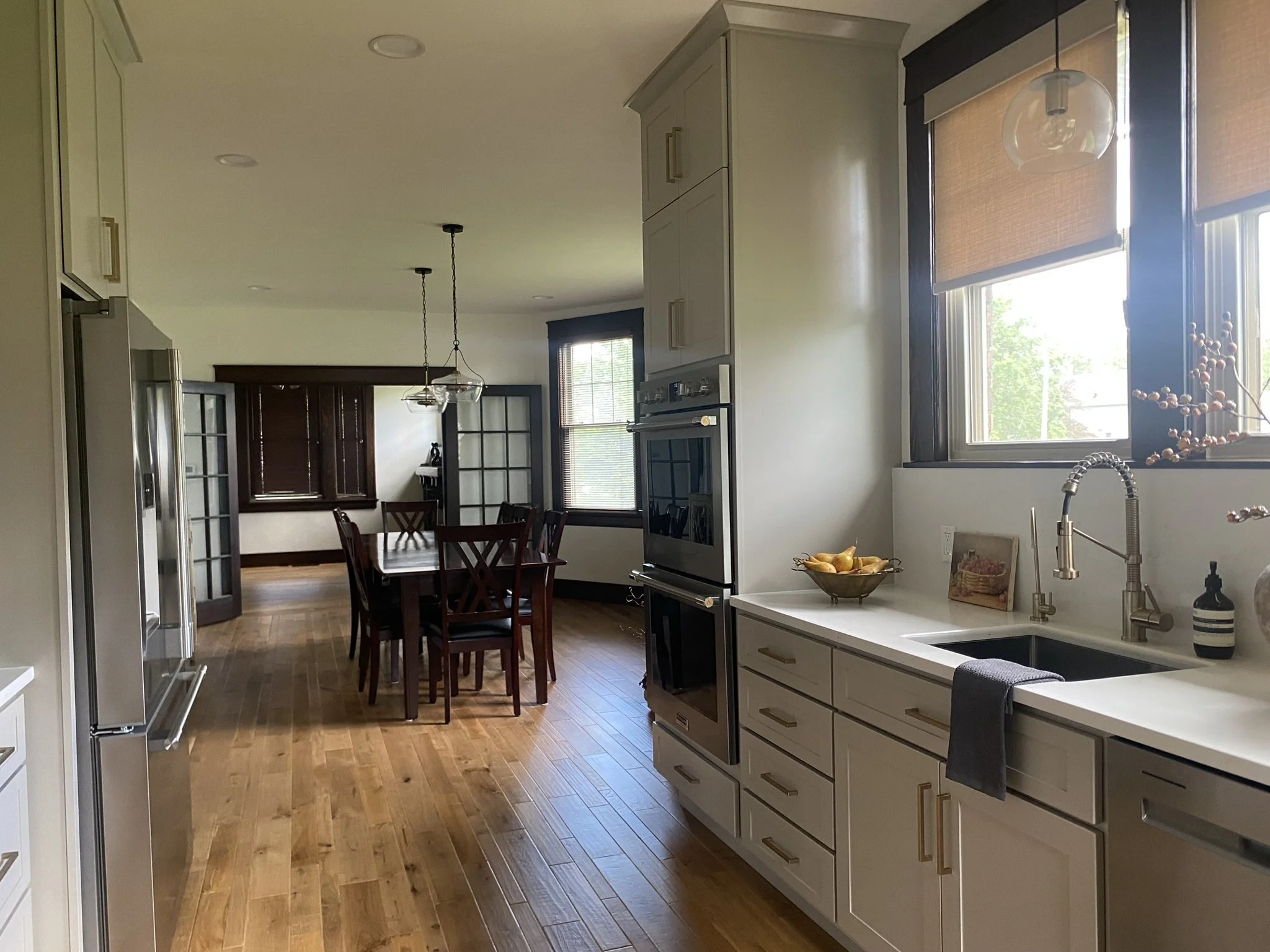 This Craftsman kitchen renovation was all about opening up the space while preserving its classic charm. We removed the wall separating the kitchen and dining room to create a brighter, more connected layout, and continued the same flooring throughout for a seamless flow.