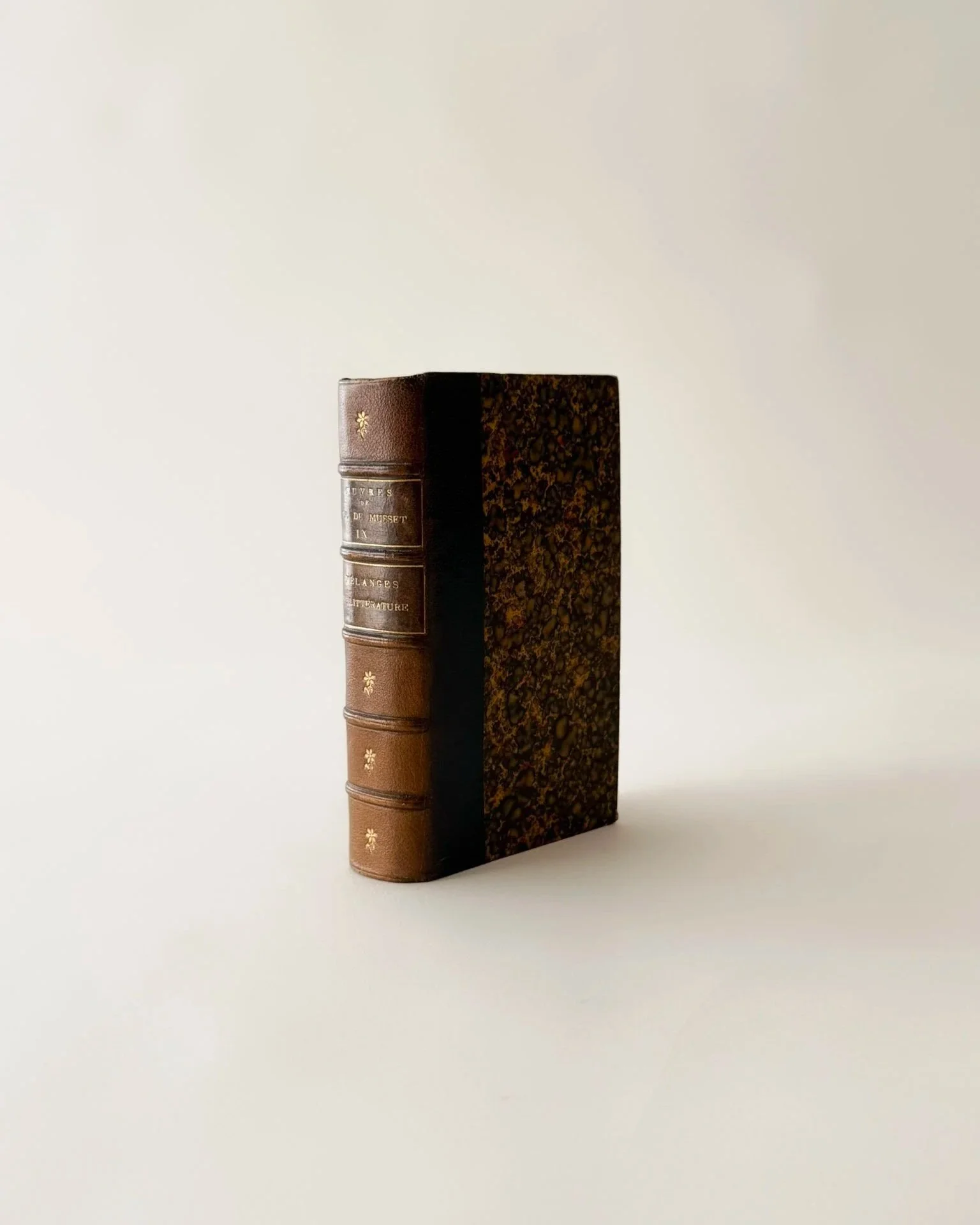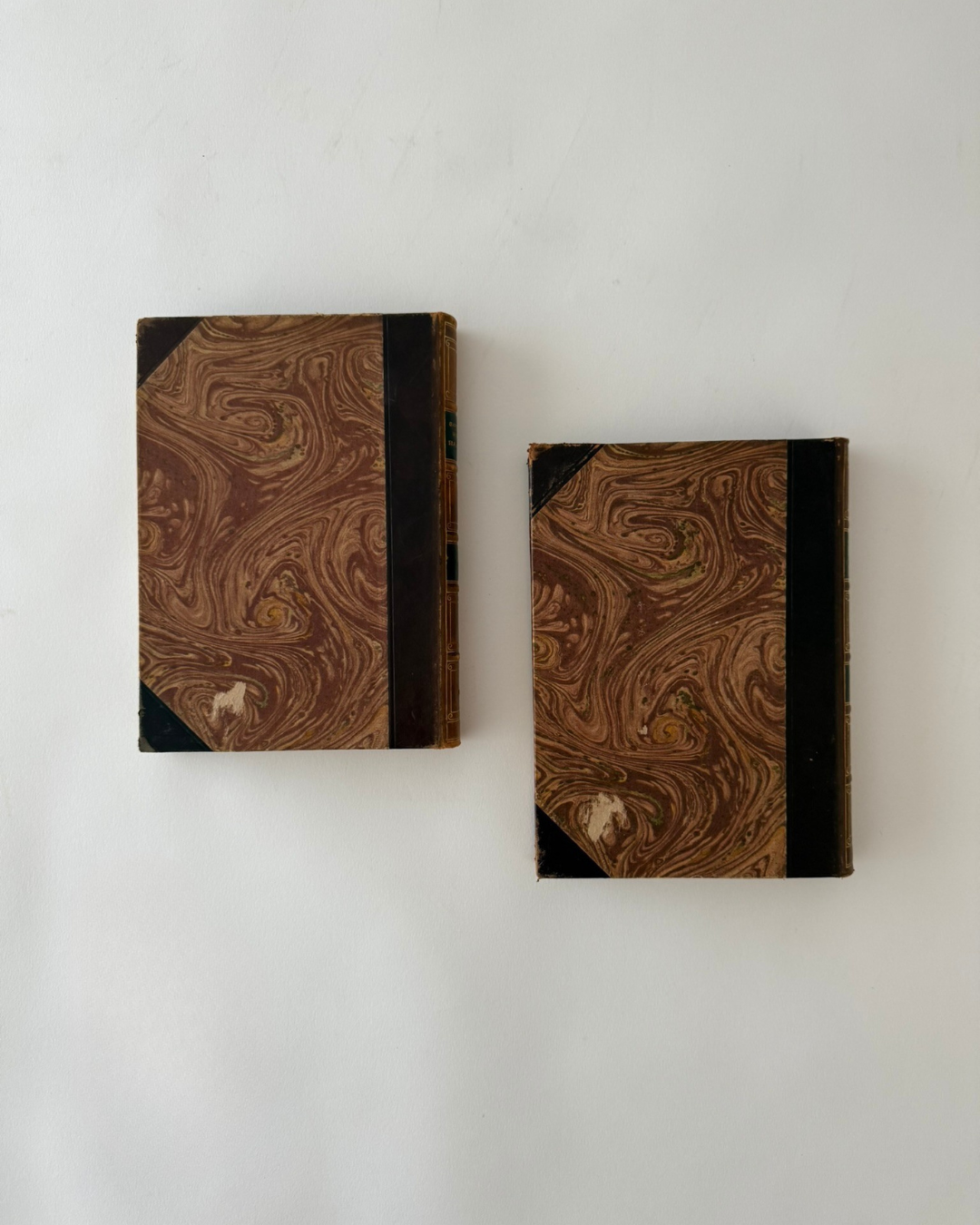 Leather spines and corners are in relatively good condition overall with minor wear consistent with age.